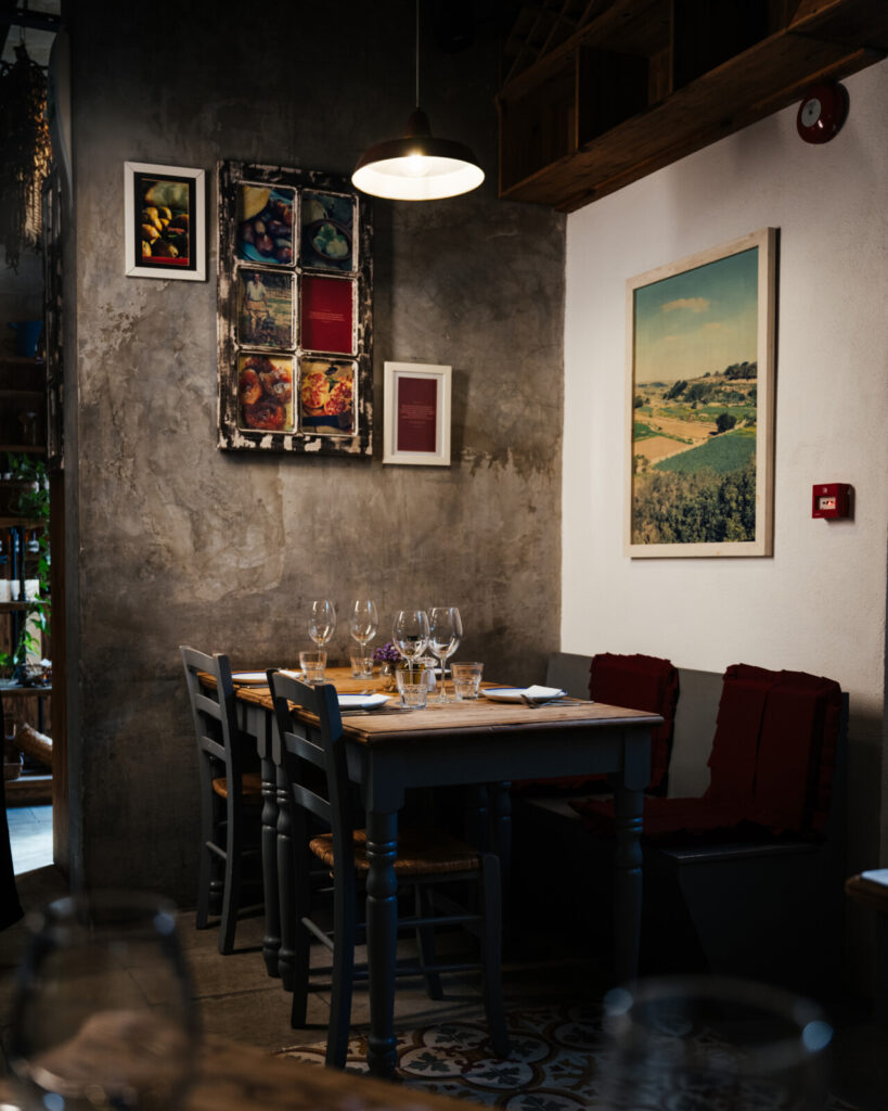 Il fascino di Diar il-Bniet è indiscutibile. Il ristorante con cucina a vista è stato ricavato all’interno di una casa tradizionale del villaggio: un ambiente elegante e rustico al tempo stesso, con luci calde, legno, ceramiche e un profumo nell’aria che fa subito casa.