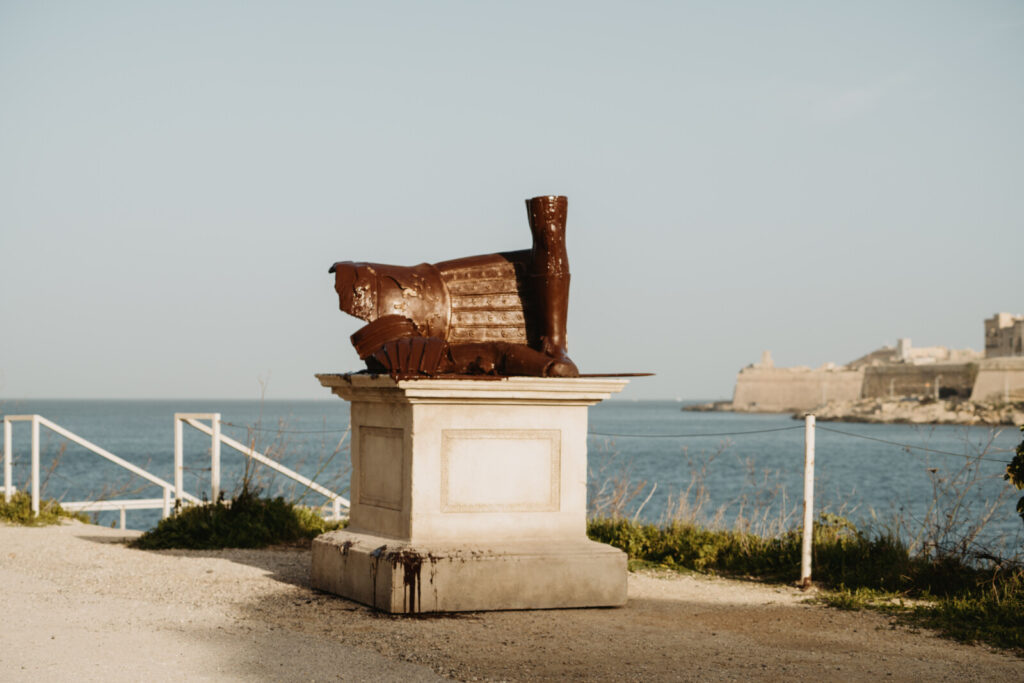 A sua volta, Dolce di Charlie Cauchi esplora i temi dell’autenticità e dell’identità in un momento universale in cui la sovrapposizione tra realtà e finzione sullo schermo ha assunto un significato cruciale. Richiamando La Dolce Vita e Federico Fellini, l’opera svela i meccanismi illusori del cinema e indaga autenticità, identità, lavoro e produzione globale delle immagini. Charlie è inoltre la prima artista donna a rappresentare Malta all’Esposizione Internazionale d’Arte della Biennale di Venezia.